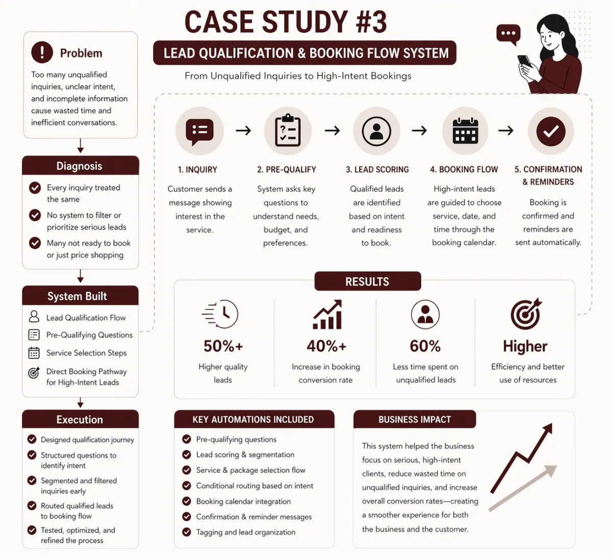 The business now spends less time on unqualified inquiries and focuses on high-value clients—leading to better conversions and a more streamlined operation.